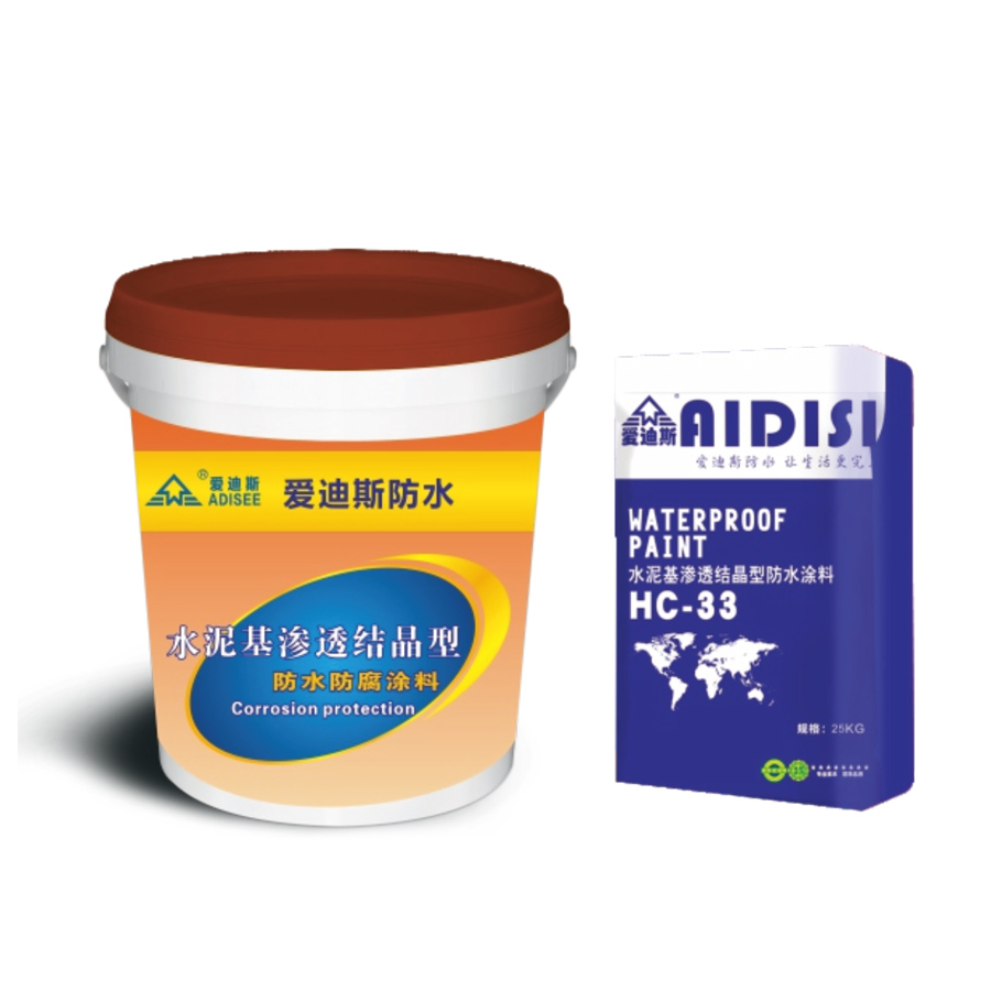 水泥基滲透結(jié)晶型防水防腐涂料是采用硅酸鹽水泥、精制石英砂及特殊活性化學(xué)物質(zhì)混配而成的淡灰色粉狀防水涂料。它的防水機(jī)理主要是利用砼結(jié)構(gòu)的多孔性,在水的作用下,防水涂料中含有的活性化學(xué)物質(zhì)以水為載體,被帶入砼結(jié)構(gòu)內(nèi)部孔縫中,隨著水對砼結(jié)構(gòu)毛孔的滲透與混凝土中的游離子交互反應(yīng)生成不溶于水的結(jié)晶物,結(jié)晶物在砼結(jié)構(gòu)孔縫中吸水膨脹,由疏至密,使混凝土結(jié)構(gòu)表層向縱深處逐漸形成一個至密的抗?jié)B區(qū)域,大大提高了結(jié)構(gòu)整體的抗?jié)B能力。且由于活性物質(zhì)多年以后還能被水激活,故二次裂縫能生長出新的結(jié)晶物,因此具有多次自愈修復(fù)、提高抗?jié)B的能力、防水作用持續(xù)長久的功效。